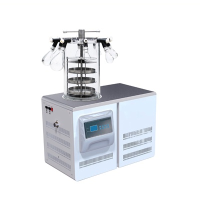 实验用冻干机是将含水物品预先冻结,然后将其水分在真空状态下升华而获得干燥物品的一种技术方法。经冷冻干燥处理的物品易于长期保存,真空冷冻干燥机加水后能恢复到冻干前的状态并保持原由的生化特性。对于热敏物质如抗菌素、疫苗、血液制品、酶激素和其它生物制品,冷冻干燥技术更能显示其优越性。